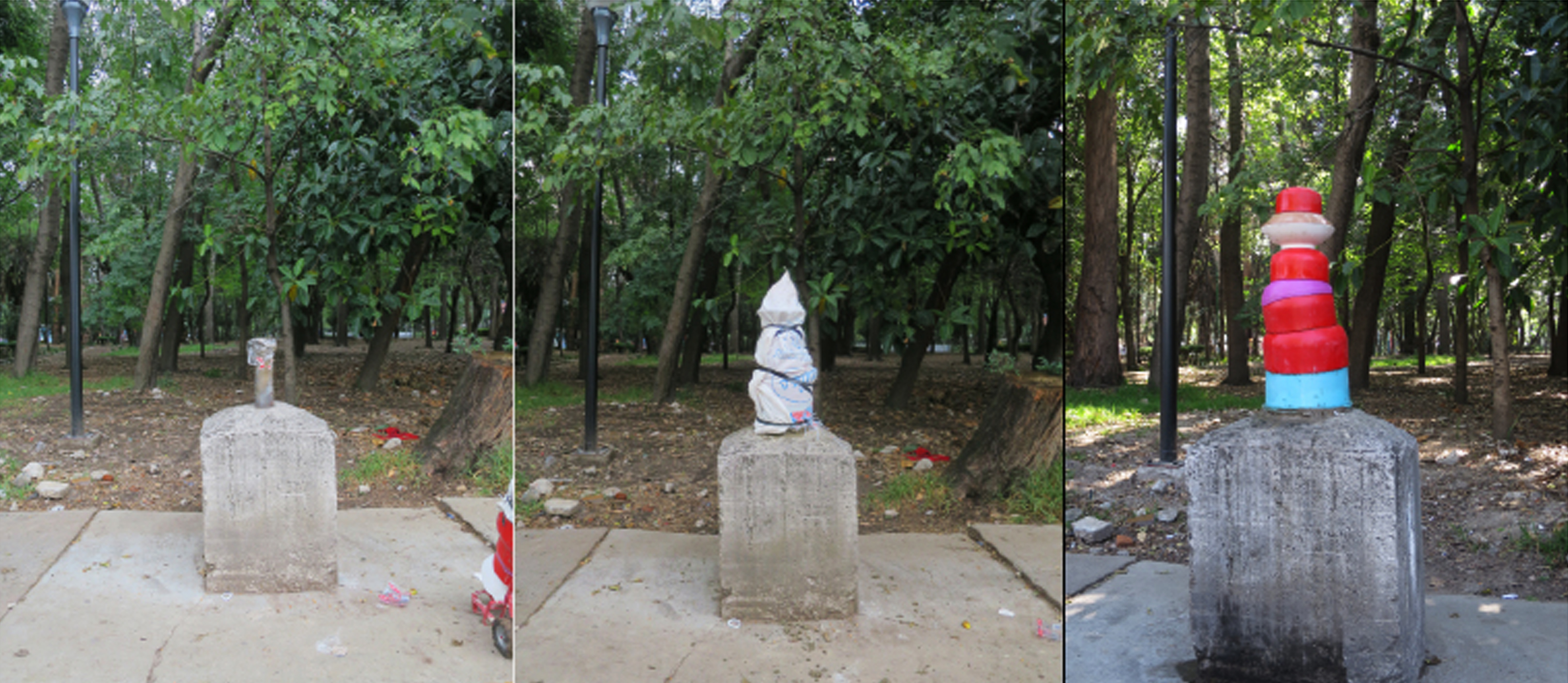 Parasito 23 HDPE, fibra de vidrio y cemento Anclada sobre base abandonada, Parque López Velarde, México, 2015 Compártelo: Compartir en X (Se abre en una ventana nueva) X Comparte en Facebook (Se abre en una ventana nueva) Facebook Me gusta Cargando... Relacionado
